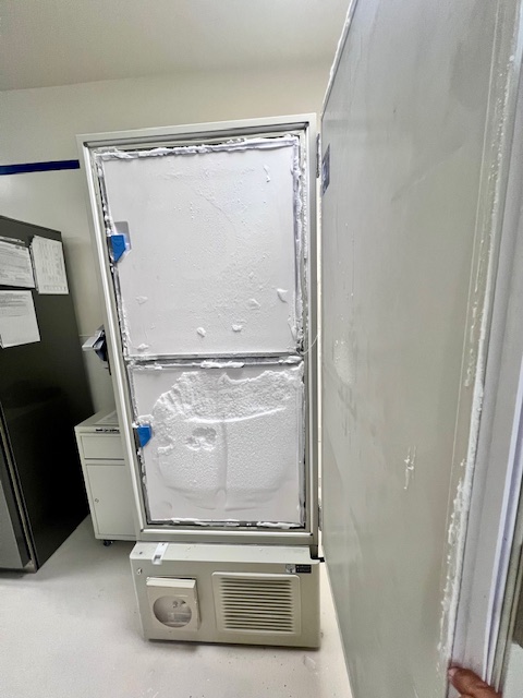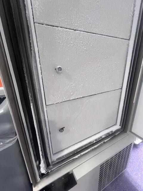 Excessive frost reduces the performance of any freezer’s cooling capabilities. We vacuum and scrape all frost from each freezer shelf. If biologics are being stored in the freezer, we temporarily transfer and store them while the freezer is being cleaned.